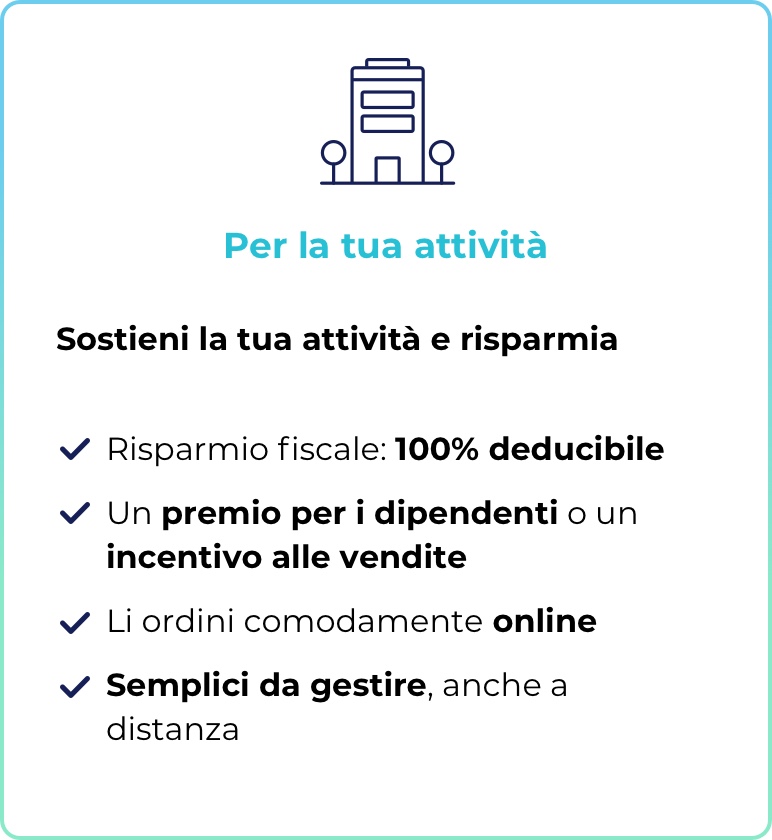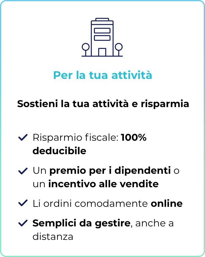 "Sono perfetti come buono omaggio e come gadget per i clienti. I benefici sono importanti anche dal punto di vista fiscale. Li ho già consigliati a molti colleghi per i loro clienti.”